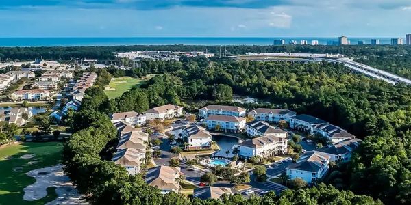 Aerial view of the Willow Bend community in Barefoot Resort next to the Norman golf course. We're just across the Intercoastal Waterway and only 2-3 miles from the beach.